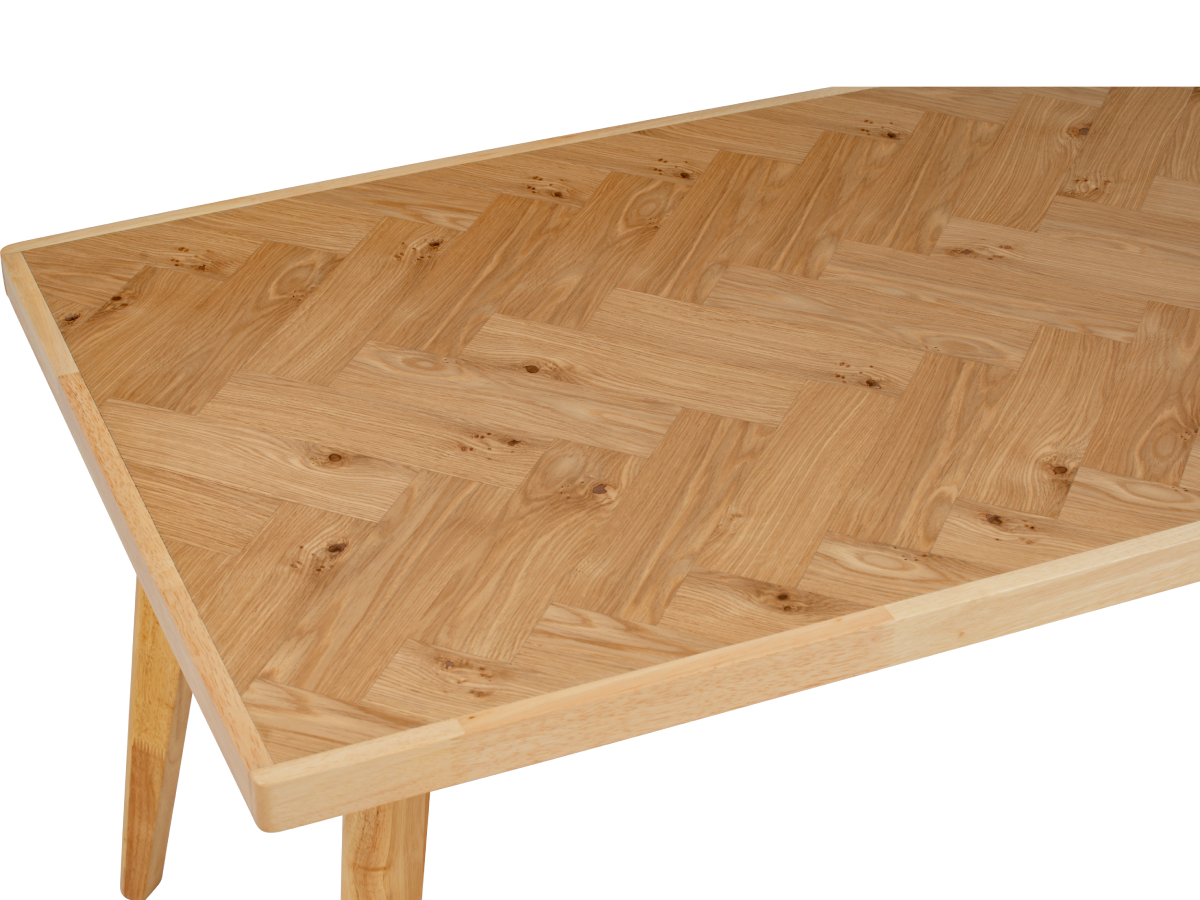 馬來西亞製造的LOFTUS餐檯,簡約北歐風設計,自然原木色,為飯廳帶來清新悠然的空間質品味。LOFTUS餐檯特別加入人字紋(Herringbone pattern)的橡木飾面檯面,視覺上更立體、更具層次,加上木紋清晰自然,成為飯廳焦點與美學所在。餐檯長度150厘米,容易配襯不同餐椅與長椅,同時容易擺放家居空間,迎合不同香港家庭需要。透過圓角設計處理,餐檯更柔和及具流動感的視覺效果,同時提升安全度。