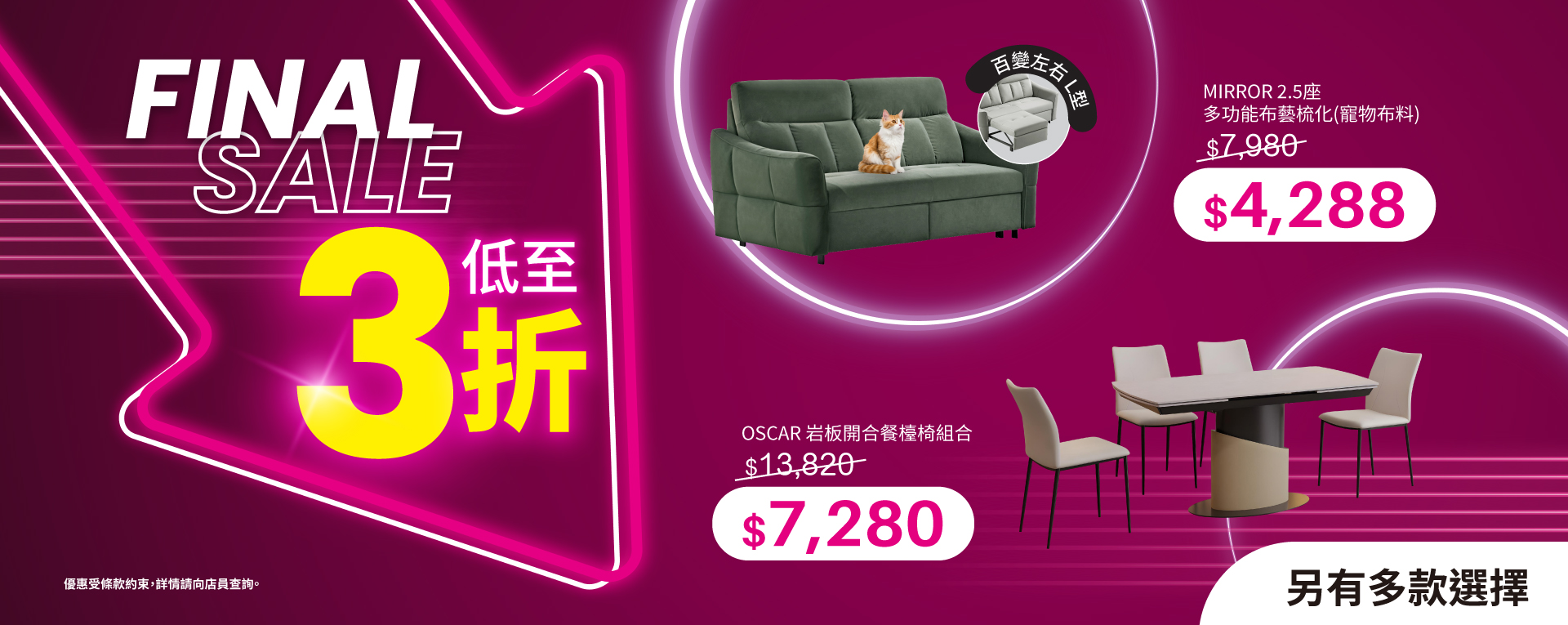 🎅今個聖誕,at.home同沙田HomeSquare為您帶來一個全新夢幻世界,充滿萌趣與夢幻並存的聖誕打卡天堂!大量超筍傢俬優惠,真皮梳化、布藝梳化、寵物布梳化、岩板餐檯椅套裝、木餐檯椅套裝、升降茶几樣樣齊,餐檯椅套裝最平$3,980;消費滿指定金額仲有折上折優惠,買夠金額最多再減$1,000!