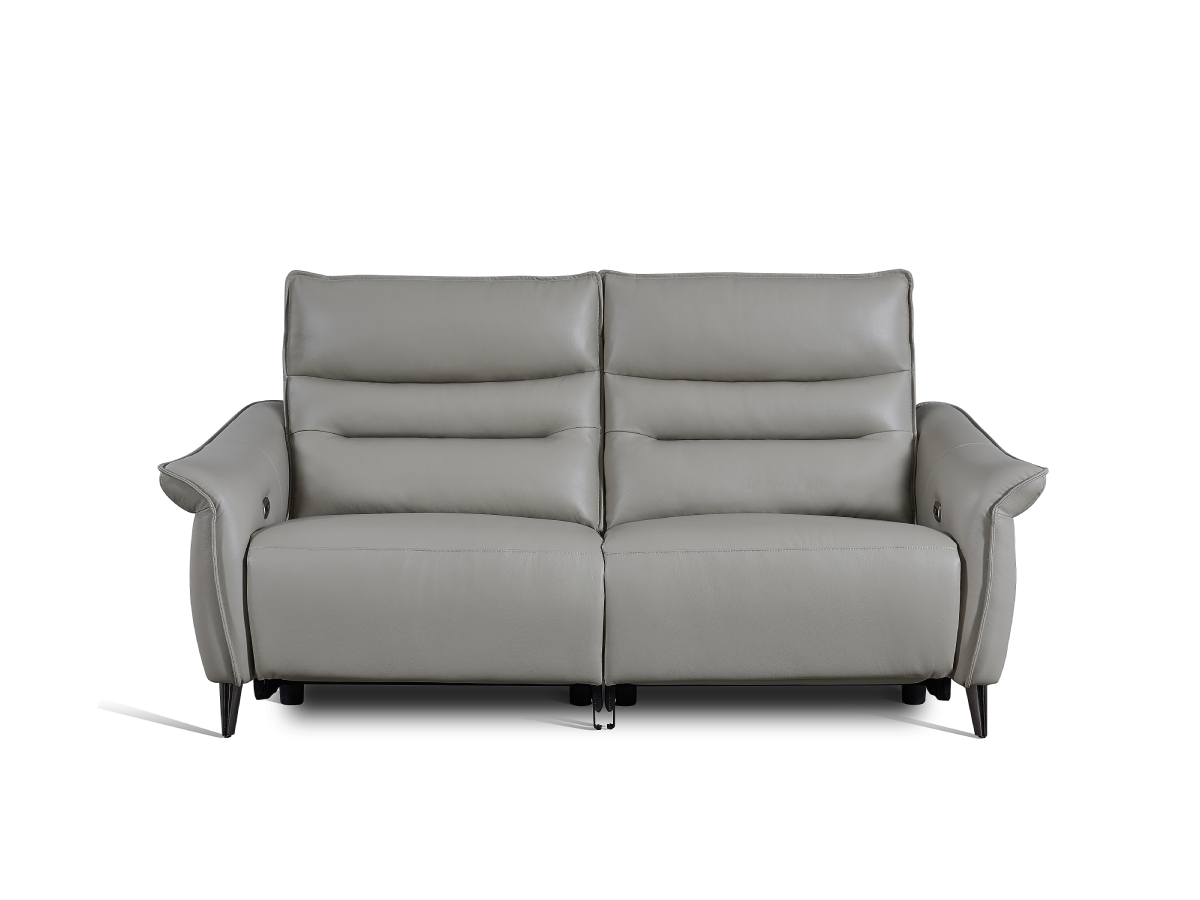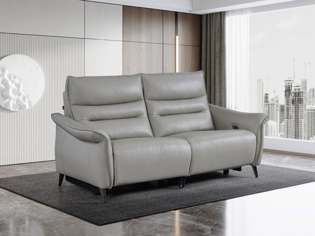 SOFIA真皮電動彈鉸梳化具現代歐洲梳化造型設計,獨特向外延展扶手設計,提升手部承托舒適度及視覺美學。弧形高背厚枕設計,可從每個細節去欣賞其優雅舒適的梳化座椅及靠背,配合優質電鉸,腳踏角度可自由調校,全方位提升居家享受。淺灰色梳化款式,時尚亮澤,容易配襯不同家居風格空間。梳化加入零距離靠牆設計,毋須預留空間供延展彈腳,令客廳空間更加實用見使。